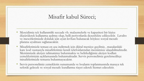 • Misafirlerimizle teması en aza indirmek için dijital menüye geçilmiş , masalardaki