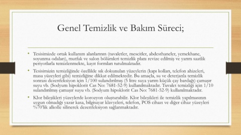 Genel Temizlik ve Bakım Süreci;