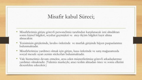 • Misafirlerimiz girişte görevli personelimiz tarafından karşılanacak izni alındıktan